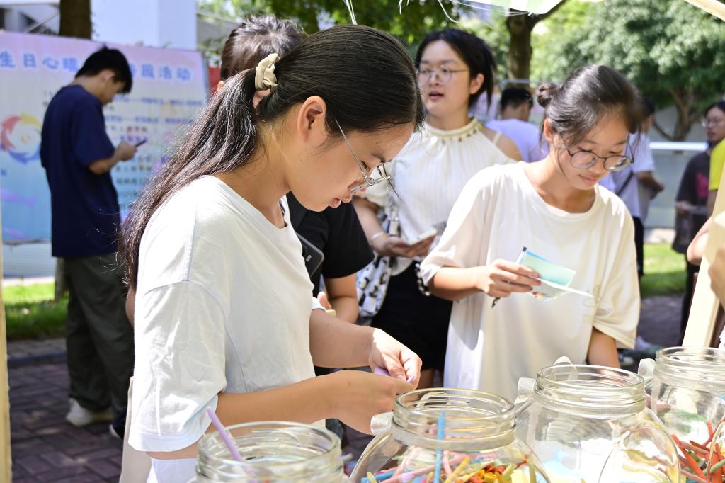 本次心理健康教育游园活动以“携手关爱,共同成长——培育积极品质,绽放生命活力”为主题,为全体同学开启了一场沉浸式心灵之旅。活动现场设置了“情绪漂流瓶”、“情绪绘画工坊”、“爱的呼啦圈”、“手脚并用”、“乘风破浪”等十余个特色展区,通过科普宣传、互动游戏、趣味挑战等形式,将心理健康知识融入轻松愉快的体验中,吸引千余名师生参与。本次活动旨在通过参与不同活动以体验身心变化过程,让学生发现自己身上的积极心理品质,培养自身积极心理和提升学生应对不良心理现象的能力,从而更好地应对学习与生活中遇到的挑战。