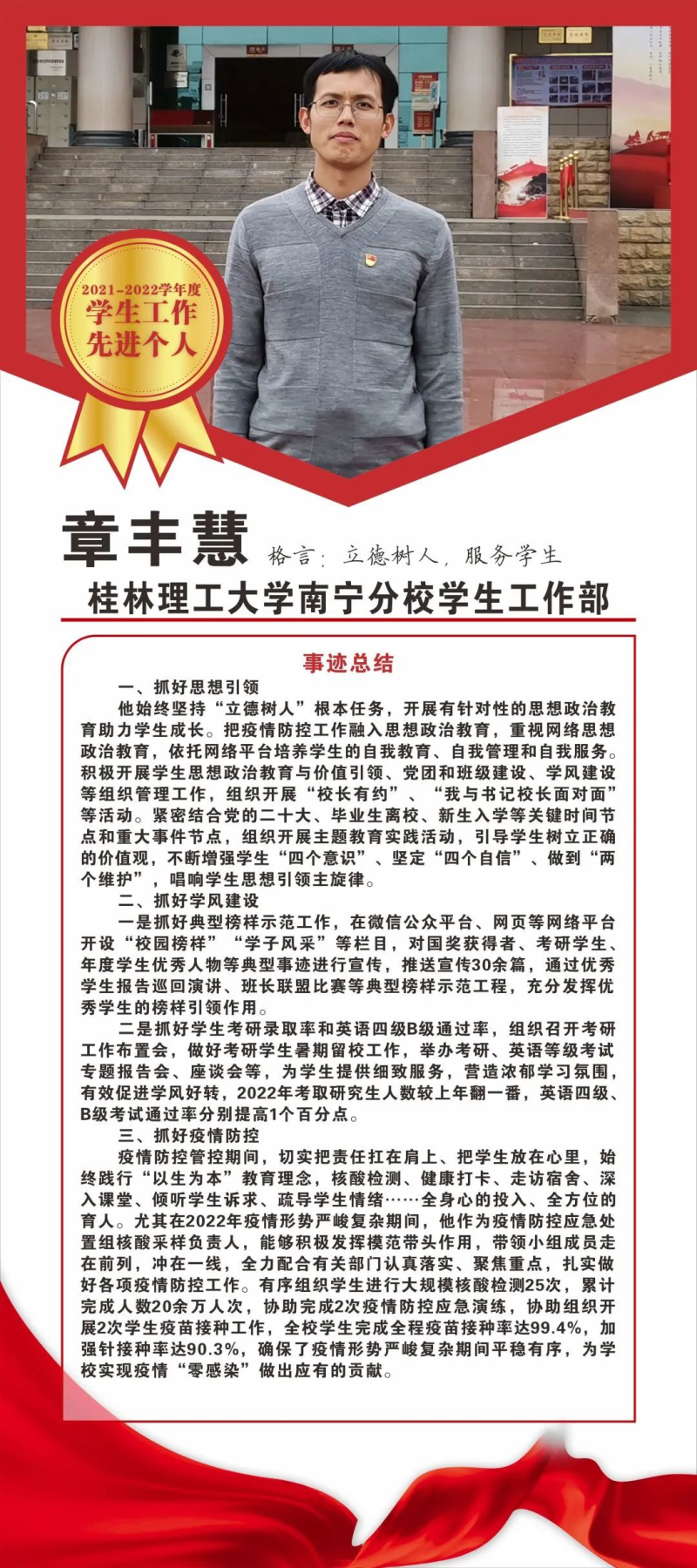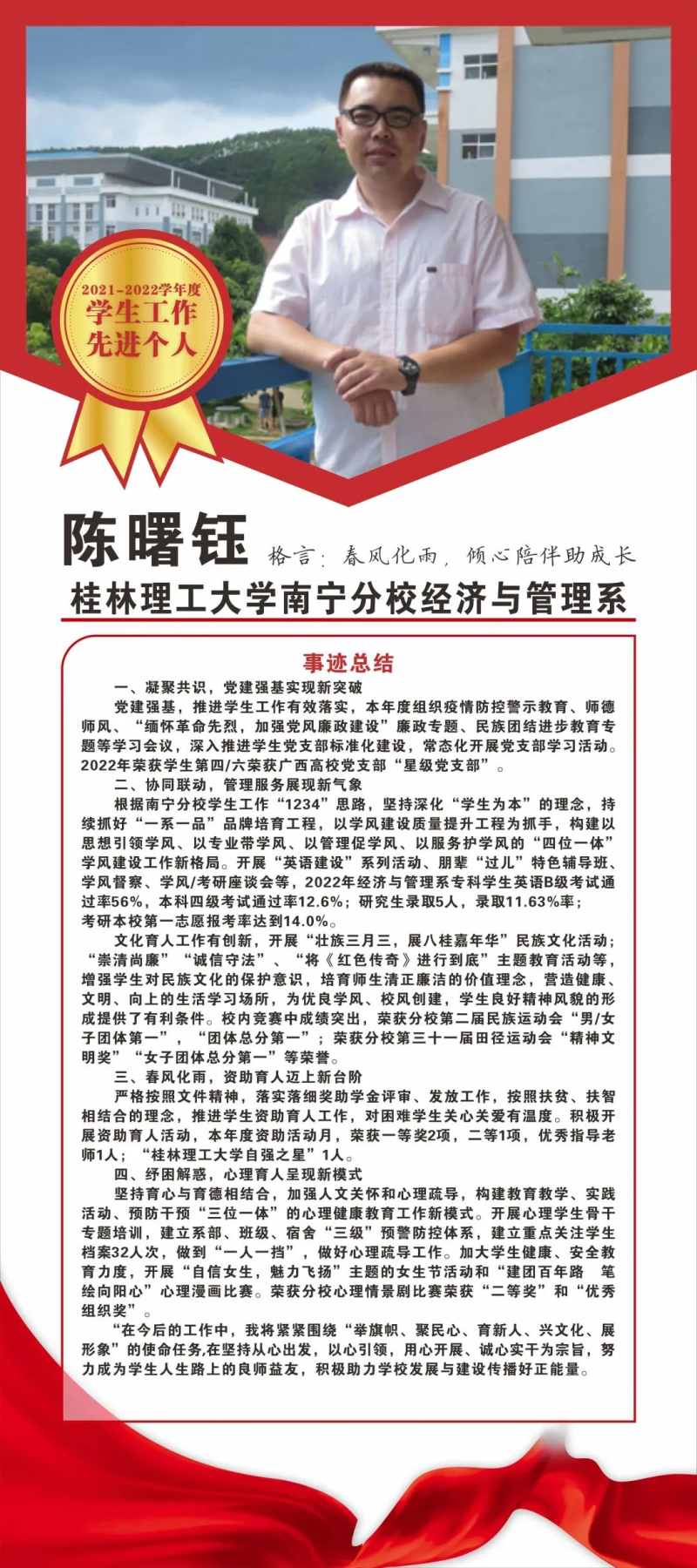 他们亦师亦友,为我们排忧解难;他们有教无类,为我们打开智慧之门;他们无私奉献,为我们构筑成功之阶梯。让我们一起为优秀的老师喝彩吧!