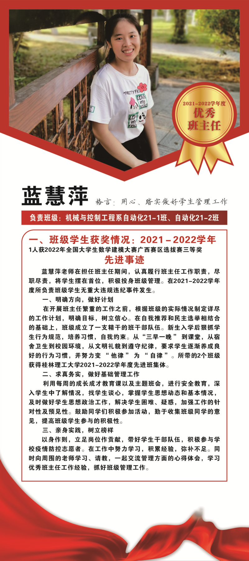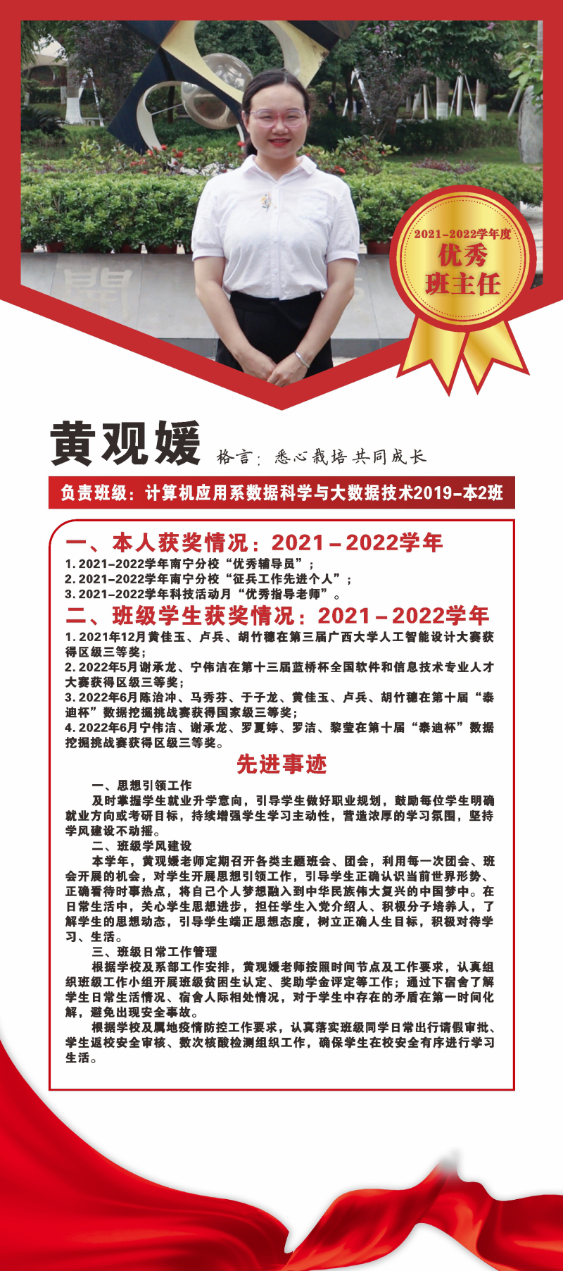 现在,让我们一同领略2021-2022学年度优秀班主任的风采吧!