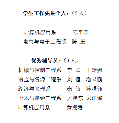 根据《关于开展太阳集团21382020-2021学年度“学生工作先进个人”、“优秀辅导员”评选工作的通知》要求,分校组织开展了“学生工作先进个人”、“优秀辅导员”评选工作。经个人申请,系部推荐,学生工作部评审,共评选出“学生工作先进个人”2名、“优秀辅导员”9名。现将名单予以公示(如下)。