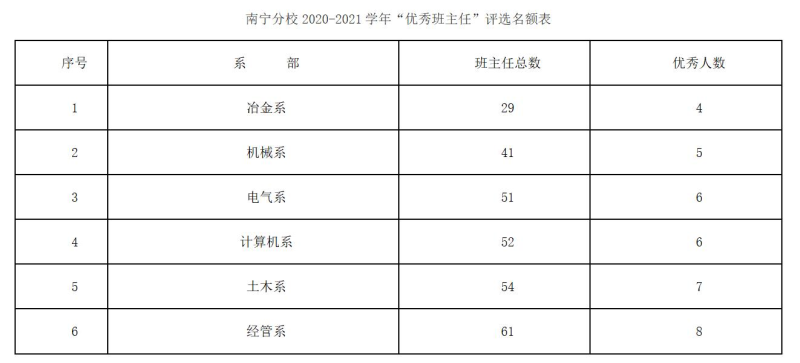 “优秀班主任”的评选按照规定名额由各系部评审上报产生,上报分校前须进行系部内公示,最终名单由学生工作领导小组审核确定。