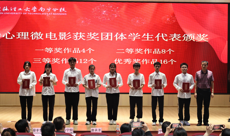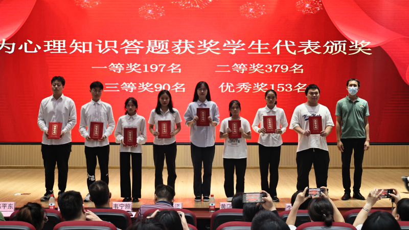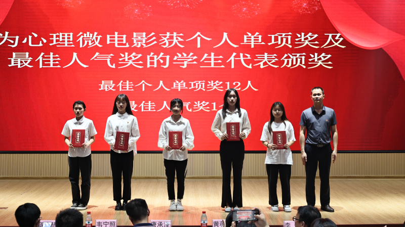 学生工作部负责人宣读了2023年“5·25”大学生心理健康活动月表彰文件,共评选出“心理微电影”获奖作品40个、“心理情景剧”获奖作品9个、“微电影最佳个人奖及最佳人气奖”13人、“心理知识答题”获奖人数738人。与会领导嘉宾为获奖学生代表颁发荣誉证书。