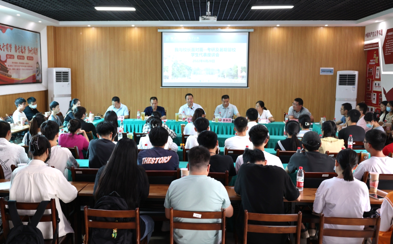 座谈会上,学生代表结合在校学习经历和考研院校选择、专业报考、复习经验等方面进行交流和分享,对暑期校园管理、后勤保障等学习生活需要提出建议。