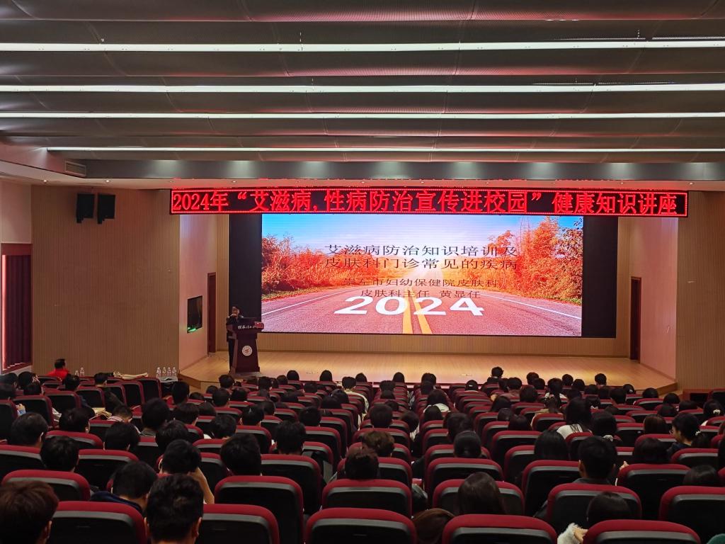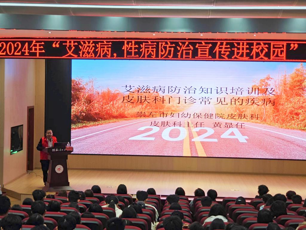为切实提升大学生安全健康防护水平,强化艾滋病预防意识,助力校园健康防线建设,太阳集团2138于11月22日在空港校区8408报告厅举办了“艾滋病、性病防治宣传进校园”主题健康知识讲座。本次讲座特别邀请到崇左市妇幼保健院黄显任主治医师担任主讲嘉宾,吸引了分校300余名学生积极参与。