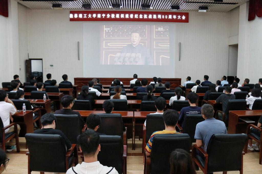 报告厅内,师生们全神贯注聆听习近平总书记发表的重要讲话,认真观看阅兵仪式,共同回顾那段烽火连天的峥嵘岁月和见证强国建设的辉煌成就,深刻理解伟大抗战精神的历史意义和时代价值,进一步增强了民族自豪感、更加坚定了报国之志。