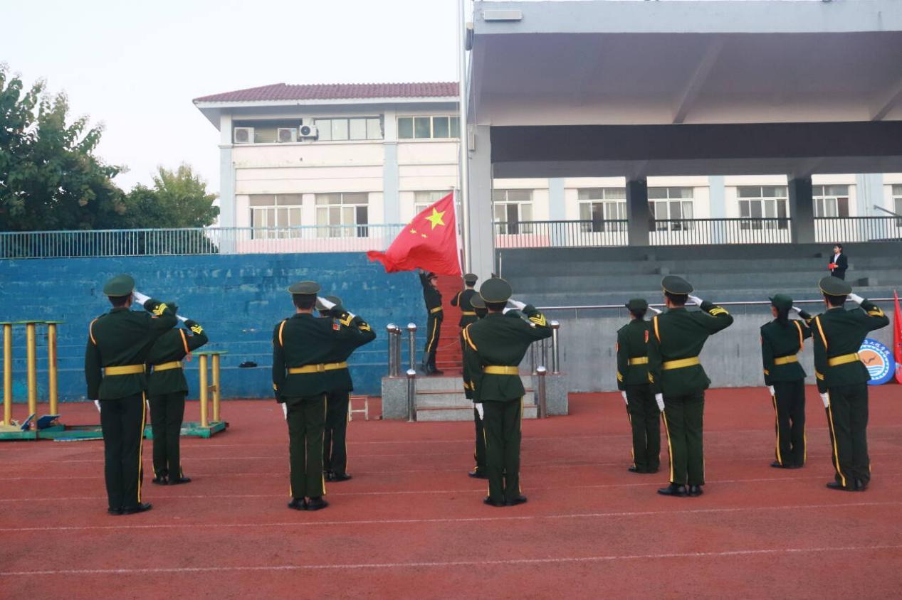 仪式开始,国旗护卫队迈着坚定有力的步伐,护送五星红旗走向升旗台。在雄壮嘹亮的国歌声中,鲜艳的五星红旗在校园冉冉升起,全体师生面向国旗庄严肃穆,行注目礼。