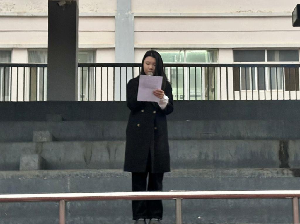 升旗仪式于7:00准时开始,护旗手护卫着鲜艳的国旗,迈着矫健的步伐,护送国旗走到旗台。全体师生肃立,行注目礼,伴随着庄严的国歌,国旗冉冉升起,迎风飘扬。在庄严的国旗下,建工24-1班陆远婷同学以“勇担时代使命,传承爱国精神”为主题进行演讲,她表明爱国是每一位公民的义务与责任,希望广大青年要勇于探索,努力提升自己,用实际行动将爱国精神薪火相传。同时告诫我们要铭记历史,勿忘国耻,努力学习,不断提升自己的综合素质,为国家的和平与发展贡献自己的力量,勇做担当时代使命的当代新青年,为实现中华民族伟大复兴的中国梦而努力拼搏!