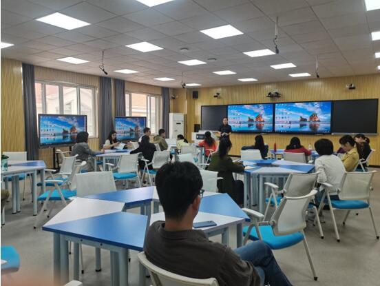 本次培训分三场,共计约90人次参训,主要介绍了一体机互动屏的基本使用方法以及软件的辅助教学功能,针对智慧教室“分组研讨”的小组讨论教学模式以及教室的录播功能进行了详细的讲解与演示,同时通过各类智慧装备辅助教学内容呈现、便利学习资源获取、促进课堂交互开展。