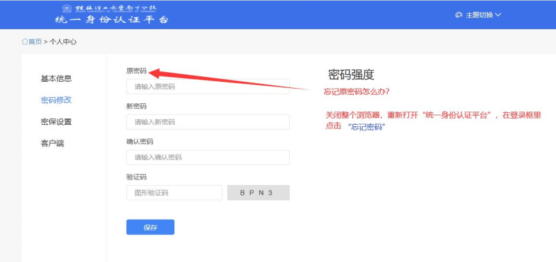 关闭整个浏览器,重新打开“统一身份认证平台”,在登录框里点击“忘记密码”