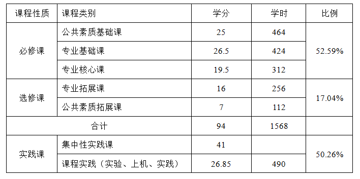 其中:必修课112学分,选修课23学分(通识选修课7学分、专业选修课16学分),集中性实践教学环节41学分;