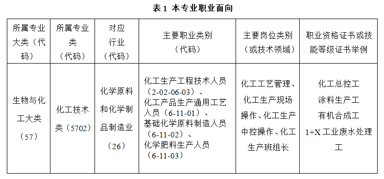 本专业培养思想政治坚定、德技并修、全面发展,适应化工及相关行业和社会发展需要,具有一定的科学文化水平,良好的人文素养、职业道德和创新意识,精益求精的工匠精神,较强的就业能力和可持续发展的能力;掌握应用化工技术专业知识和技术技能,面向化学原料和化学制品制造业的化工生产工程技术人员、化工产品生产通用工艺人员、基础化学原料制造人员、化学肥料生产人员职业群,能够从事化工工艺管理、化工生产现场操作、化工生产中控操作、化工生产班组长等工作的高素质技术技能人才。