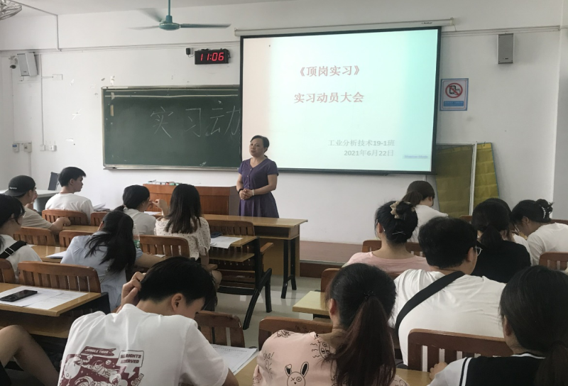 6月22日下午,我系在6311教室召开分析19-1班顶岗实习动员会。系主任何贵香、党总支副书记兼学工组长方艳出席会议,实习指导老师及分析19-1班全体同学参加了会议。