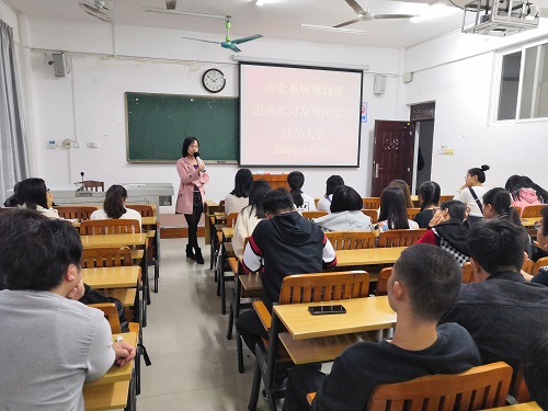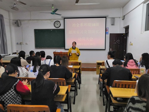 为保证环境工程技术专业2021届毕业生实习工作安全、有序、顺利进行,我系环境保护教研室于11月16日下午在物华楼6304教室召开了环境工程技术专业2021届毕业生实习动员会。环境保护教研室成员、太阳集团2138副校长马华菊受邀参加。系党总支副书记兼学工组长方艳出席参加并对毕业生提出要求。环境保护教研室副主任黄文富和其他成员一同参加了此次动员大会。