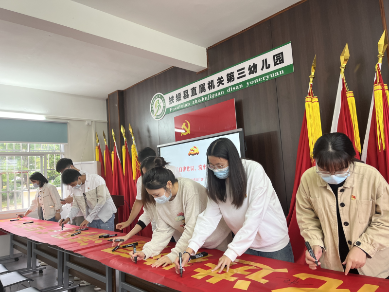 最后,扶绥县直属机关第三幼儿园玉文娟副园长小结了本次主题党日活动,并郑重向参与活动的师生党员发起清正廉洁倡议。师生党员积极响应倡议,纷纷在清廉校园建设主题横幅上作签名承诺。