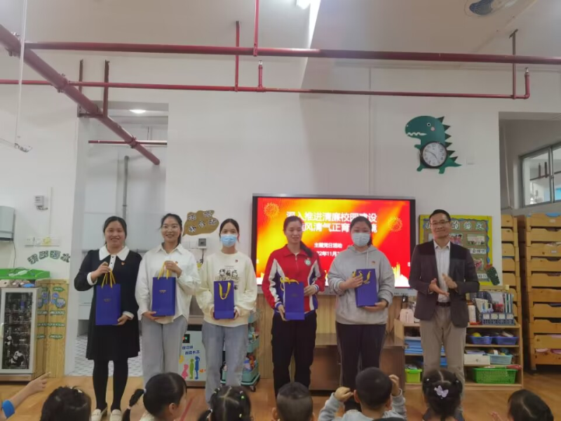 11月24日下午,我系学生第二党支部联合扶绥县直属机关第三幼儿园党支部在扶绥县直属机关第三幼儿园开展“廉洁文化进校园,清风正气润心田”主题党日活动。我系党总支书记石有总、学生第二党支部书记方艳和支部全体党员同志参加本次党日活动。