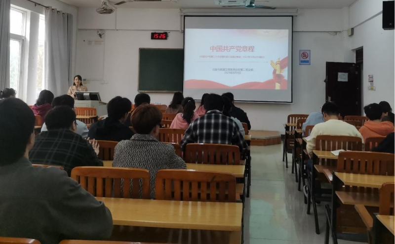 为深入学习贯彻宣传党的二十大精神,进一步加强党章的学习,我系学生第二党支部于3月3日在探源楼5205教室组织开展了深入贯彻二十大·学习领会新党章专题党课。全体党员参加本次会议。党课由支部书记方艳主讲。