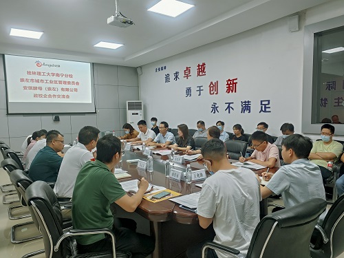 刘佩东助理致欢迎词,对肖彩霞副校长教师、冯红波局长一行的到来表示了热烈的欢迎,简要介绍了安琪酵母(崇左)有限公司主营业务发展情况,随后以“以科技创新支撑高质量发展”为主题,深入领学了党的二十大精神及习近平总书记重要讲话精神,紧密结合安琪酵母(崇左)有限公司在发展生物科技、创新健康生活方面取得的突破及成效,阐述了教育、科技、人才对于全面建设社会主义现代化国家、全面推进中华民族伟大复兴的重要意义,指出要以“追求卓越、勇于创新、永不满足”精神,奋力实现在新的生物技术领域的突破,表达了政—校—企之间在人才培养与支撑、科技交流与合作等方面深度合作的期待。