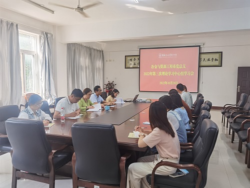 10月28日上午,我系党总支在5207会议室召开2022年第三次理论学习中心组学习会议,学习贯彻党的二十大精神和习近平总书记系列重要讲话精神。学习会由党总支书记石有总主持,系主任何贵香出席,总支委员、支部委员参加了会议。