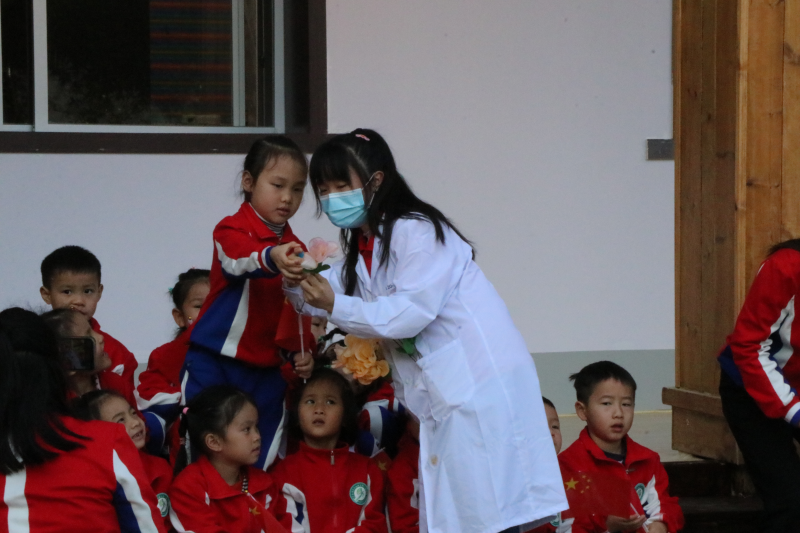 学生第二党支部和扶绥县直属机关第三幼儿园党支部的师生党员和入党积极分子分工明确、协同配合,稳步有序地开展各个活动环节,营造出了快乐而富有教育意义的活动效果。在给小朋友们带来快乐的同时,也熏陶他们童心向党、心怀祖国情感。