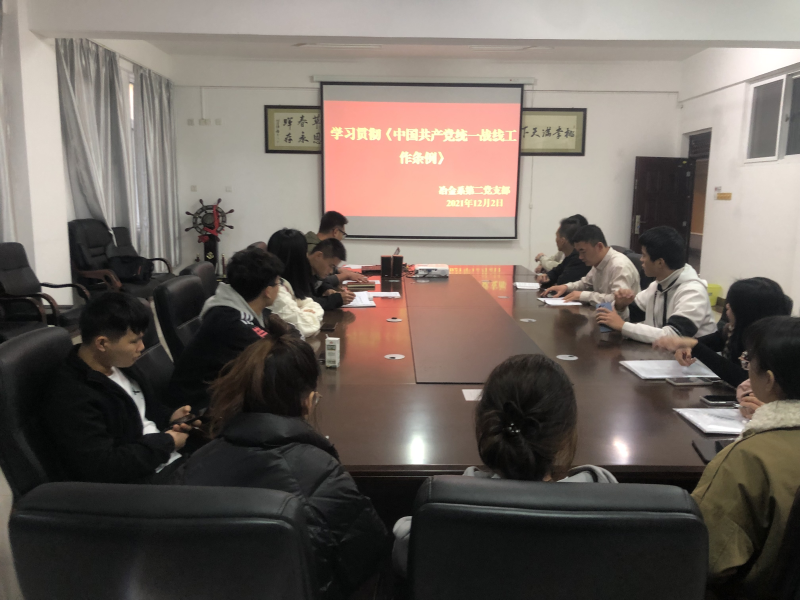 12月2日下午,我系第二党支部组织全体师生党员在探源楼5207会议室学习贯彻党中央出台的《中国共产党统一战线工作条例(试行)》(以下简称《条例》)。这是关于统战工作的第一部党内法规,为统一战线事业发展提供了政治保障、组织保障、法治保障。此次会议由我系第二党支部副书记陆康主持,全体师生党员参会。