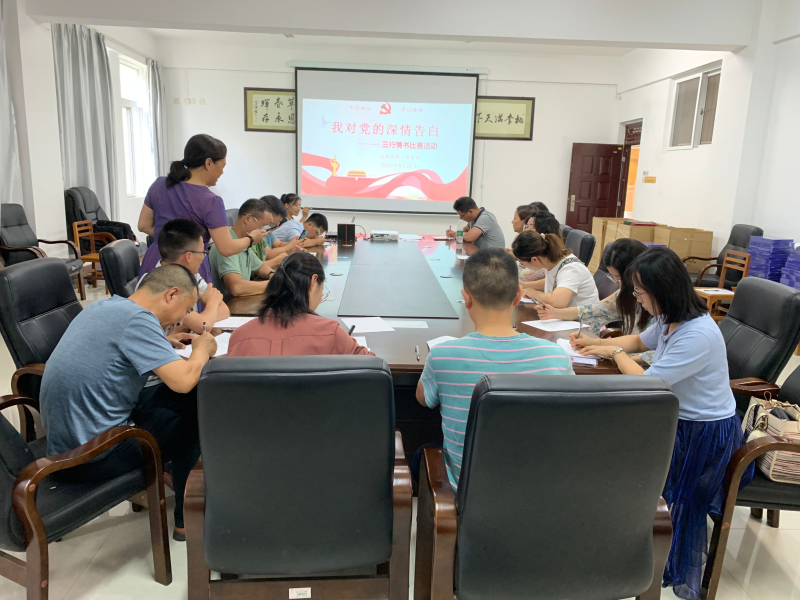 活动开始,支部书记何贵香同志首先介绍了此次主题党日活动的重要意义,在于深情回顾党的奋斗历史,继承和发扬党的光荣传统和优良作风,通过书写三行情书对党表白的方式,抒发颂党爱党的心声,表达坚定不移跟党走的信念。随后,全体党员在纸上奋笔疾书,以自己的深情,书写句句告白,祝福伟大的中国共产党成立100周年华诞。浓浓颂党爱国之情的三行情书,凝结了党员同志的真挚情感。最后,党员们就三行情书进行诵读、交流,把入党以来的感想、勉励自己的格言、对党组织的祝福等抒发出来。一句句发自肺腑的深情告白和祝福激励在座的党员时刻牢记入党初心,自觉坚守使命,忠实履行职责。