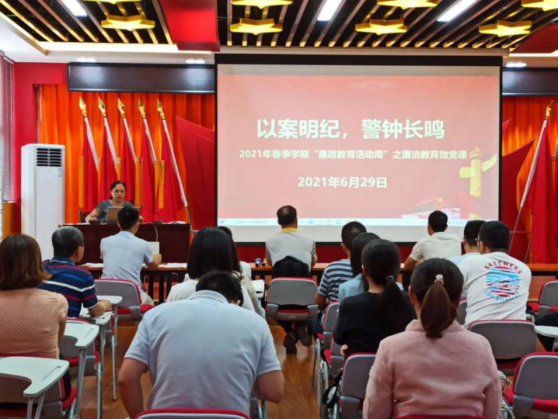 为进一步增强党员同志守纪律、讲规矩的思想,不断提升廉洁自律意识,营造清风正气的育人良好氛围,6月29日下午,党支部书记何贵香同志在分校党员教育活动中心为支部党员讲授了一堂生动的廉政专题微党课。