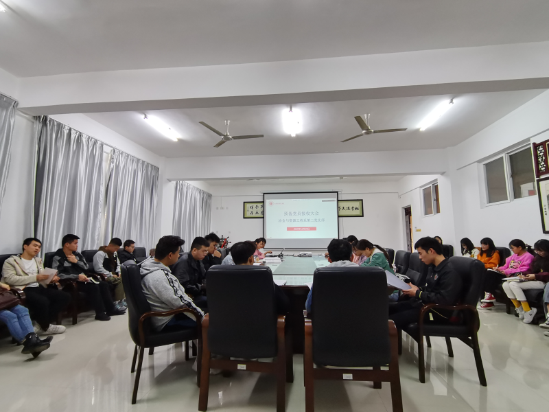 12月10日下午,冶金与资源工程系第二党支部在探源楼5207会议室召开预备党员接收大会。会议由党支部书记方艳同志主持,党支部全体党员、预备党员和10名发展对象参会。