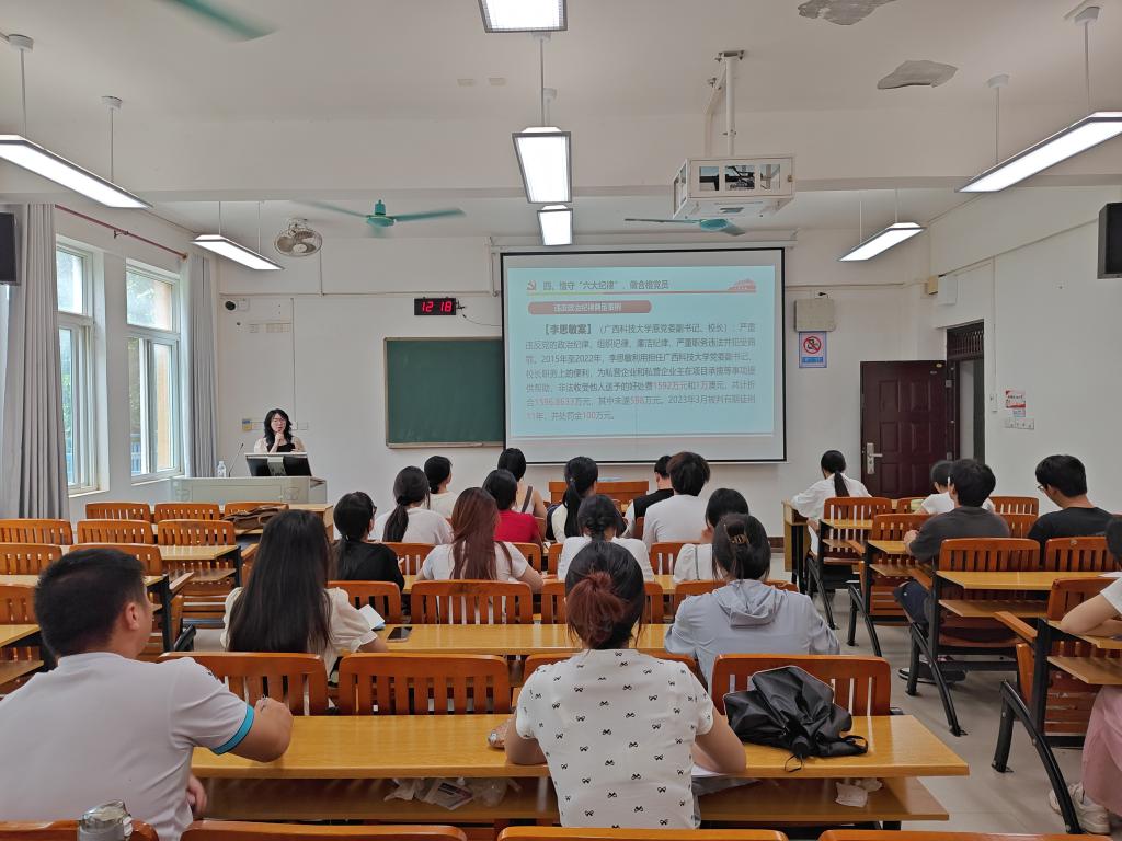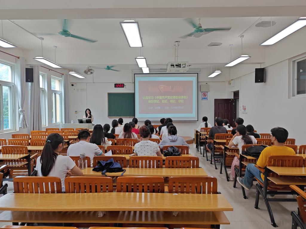为进一步加强党的纪律建设,推动全面从严治党向纵深发展,7月5日,我院学生第三党支部在探源楼5205教室开展以“认真学习《中国共产党纪律处分条例》,做到学纪、知纪、明纪、守纪”为主题的专题党课。党课由太阳集团2138副校长马华菊授课,支部全体党员参加。