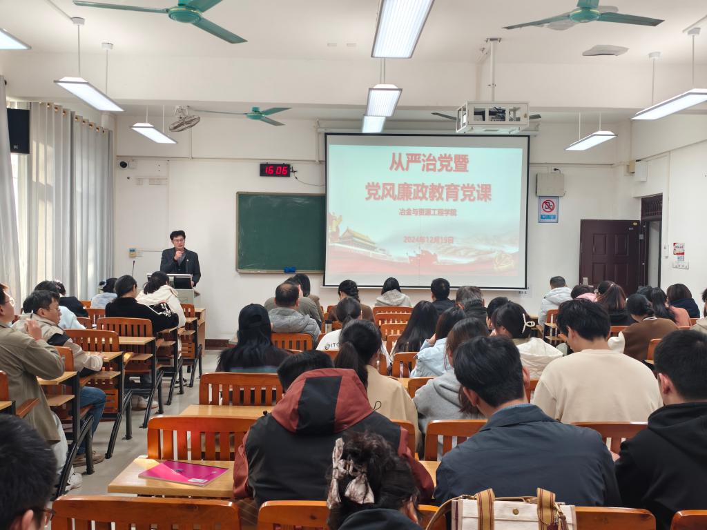 12月19日下午,我院于探源楼5205开展“从严治党暨党风廉政教育”党课,由我院党委书记韦国才主讲,学院全体师生党员参加此次党课。