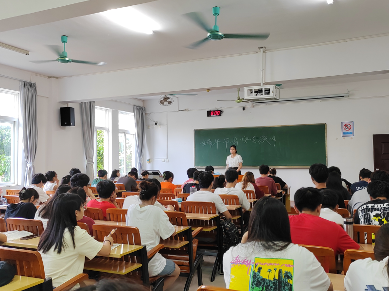 课上,老师们强调了此次课程的目的与重要性,告诉同学们放假与收假时间,提醒同学们要按时回校。接着,老师们几个安全问题:第一,宿舍安全。提醒同学们要防火防盗,宿舍门窗有损坏的要及时维修,不要使用大功率电器;第二,网络安全。要理性消费,谨防网络诈骗;第三,交通安全。提醒同学们外出要乘坐正规交通工具。第四,近期天气炎热,同学们不要江河湖泊游泳,避免发生意外。第五,食品安全。购买食物时,要注意食品包装有无生产厂家、生产日期、是否在保质期内等,不要购买三无食品。