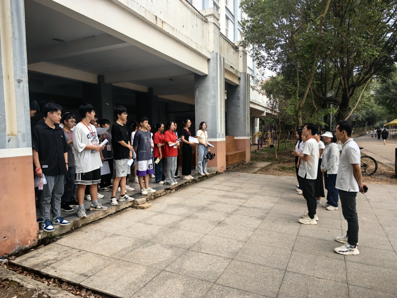 系部领导和辅导员老师准备出发去学生宿舍