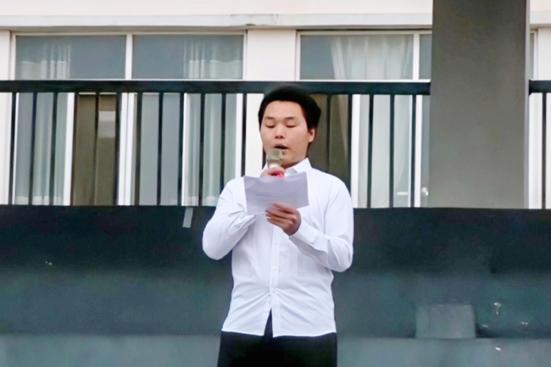 活动开始,首先举行升旗仪式,伴着嘹亮的国歌节奏,全体师生齐唱国歌,面向国旗行注目礼。升旗结束后,系学生代表梁辉力发表国旗下讲话,激励同学们从生活小事做起,全面提升发展自己,力争为学校和国家贡献青年力量。