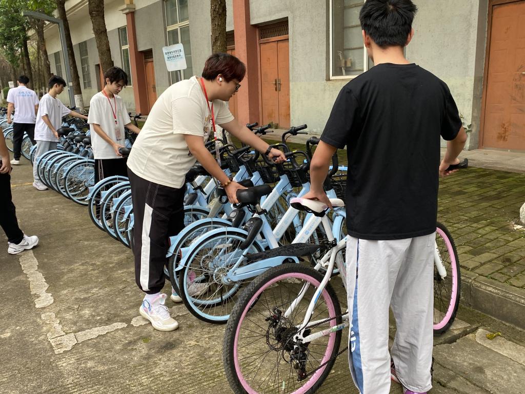 将共享单车摆放整齐