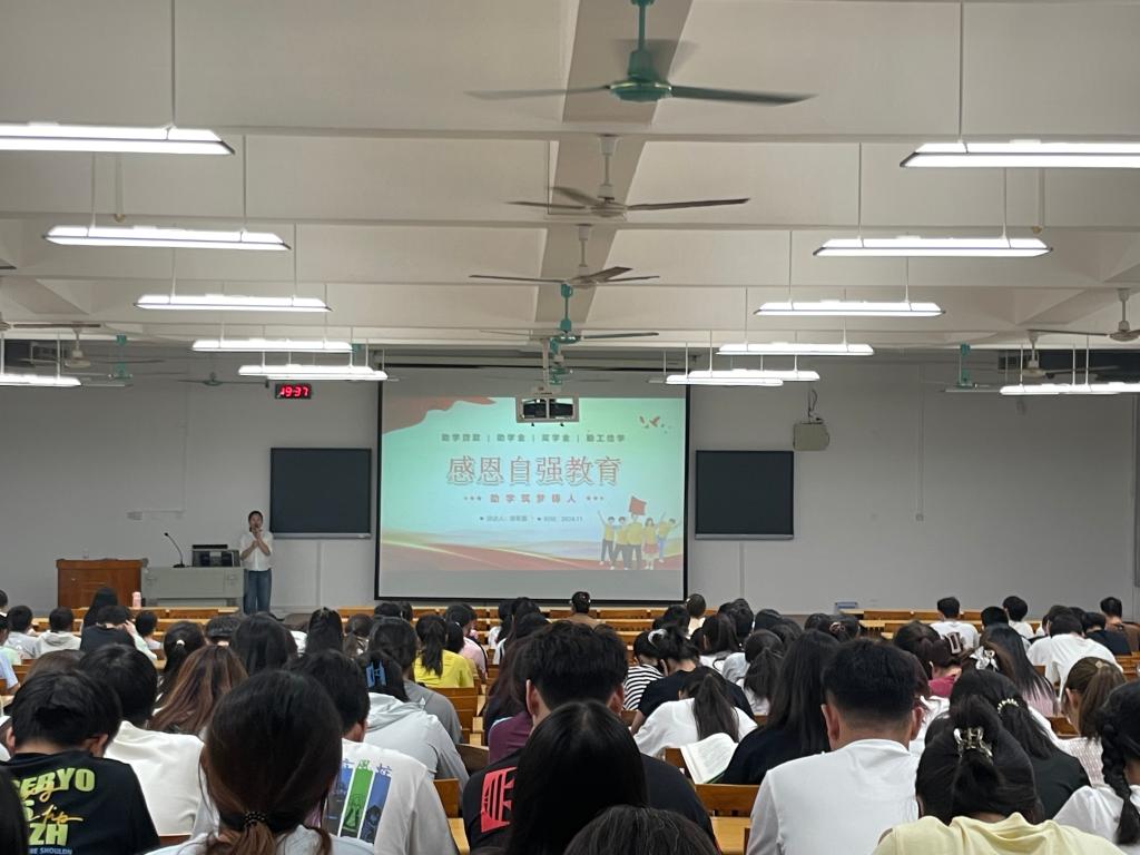 为进一步推动学生资助工作的深入开展,激励家庭经济困难学生奋发图强,培养他们的自强精神和感恩意识。11月12日晚,我院在启智楼8208教室召开了2024年秋季学期家困生感恩自强主题教育。学院在校班级的全体家庭经济困难学生积极参与了本次活动,活动由崖春露老师主持。