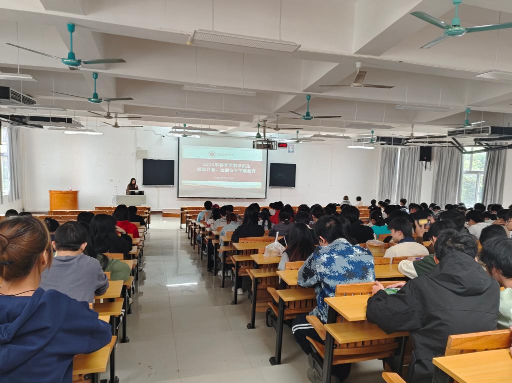 为进一步贯彻落实立德树人的根本任务,坚持以习近平新时代中国特色社会主义思想铸魂育人,引导学生知恩于心,感恩于行,增强大学生金融安全防范意识。2024年4月11日,冶金与资源工程学院在8教208开展“学感恩自强、懂金融安全”主题教育,学院全体家困生参与此次活动,活动由周颖老师主持。