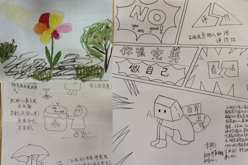生们了解了“5·25我爱我”这一心理健康主题的意义,并引导参与活动的学生们通过绘画的方式将心中的负能情绪输出为绘画作品,以达到负能情绪转化的活动目的。