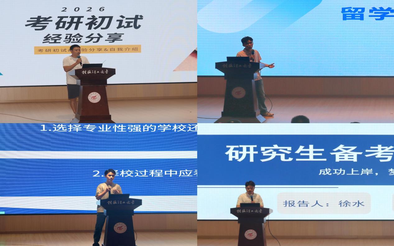 学院2021级资源循环科学与工程专业的余明涛等四位同学分享了考研成功上岸的经验和心得。余明涛同学详细阐述了理工科及工学门类不同专业的考研差异,并分享了如何制定科学的学习计划及选择合适的学习资料;颜子杰同学从不同角度阐述了考研的艰辛与收获;徐水同学分享了如何调整心态、缓解压力等实用技巧;王阳阳同学详细讲述了国外留学的申请方式及规划路径。