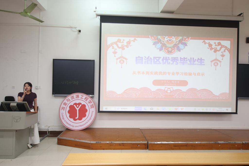 6月19日晚,冶金与资源工程学院优秀毕业生经验分享报告会在启智楼8108教室顺利举行。2025届自治区优秀毕业生代表何幸财、梁洁莹、杨家荣结合自身经历,为学弟学妹们带来了一场涵盖学业规划、竞赛科研、职业发展等多维度的经验分享会。