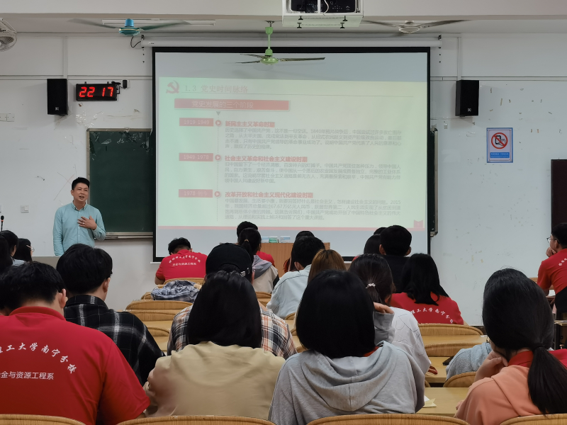 会上,潘显鹏老师从学习党史的意义、党史学习的脉络、党史学习与学生干部实践三个方面进行展开讲述。他指出,通过学习党史,从党史中汲取智慧与力量,坚定信念、坚定方向,提高自己的认识能力和处理实际问题的能力。接着潘显鹏老师向大家讲解“四史”是什么以及中国共产党的创立及早期的革命活动,并向同学们讲述了湘江战役中陈树湘的故事。
