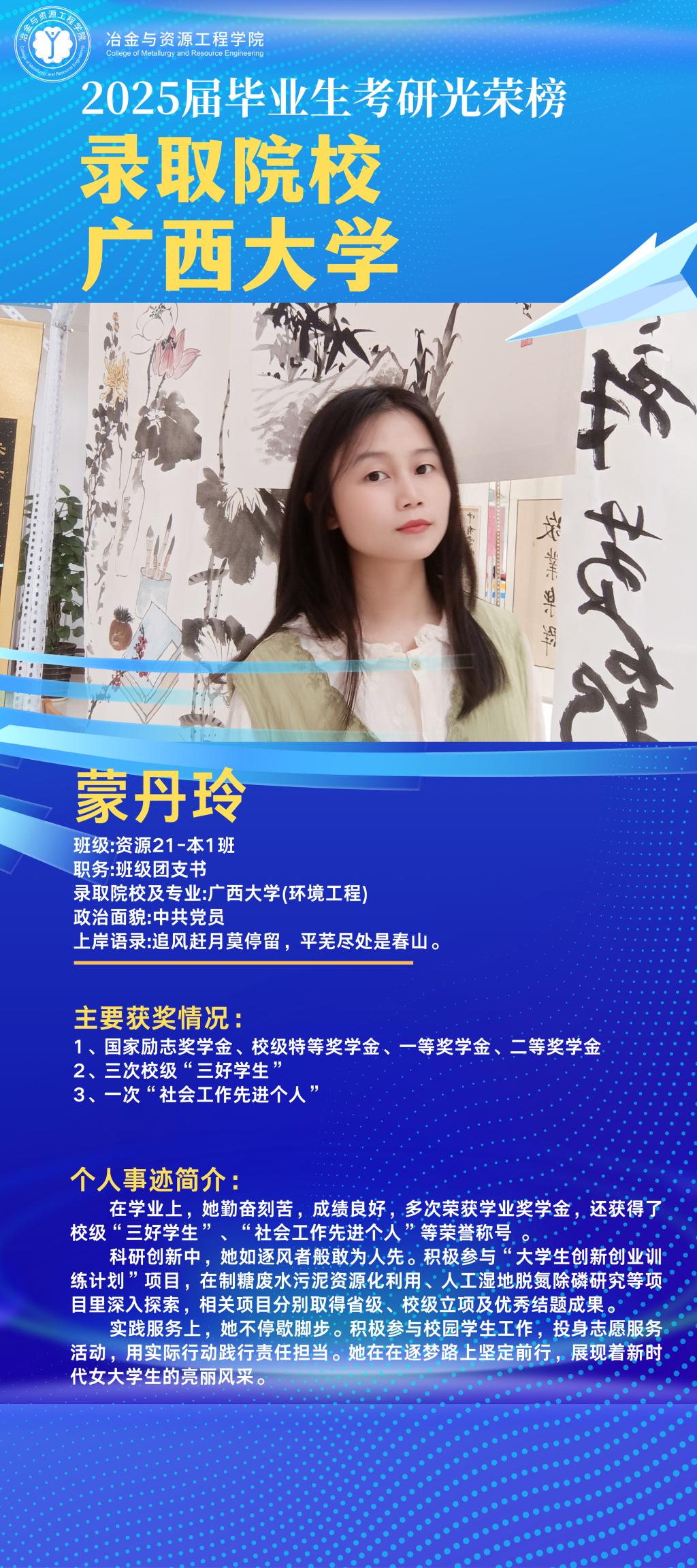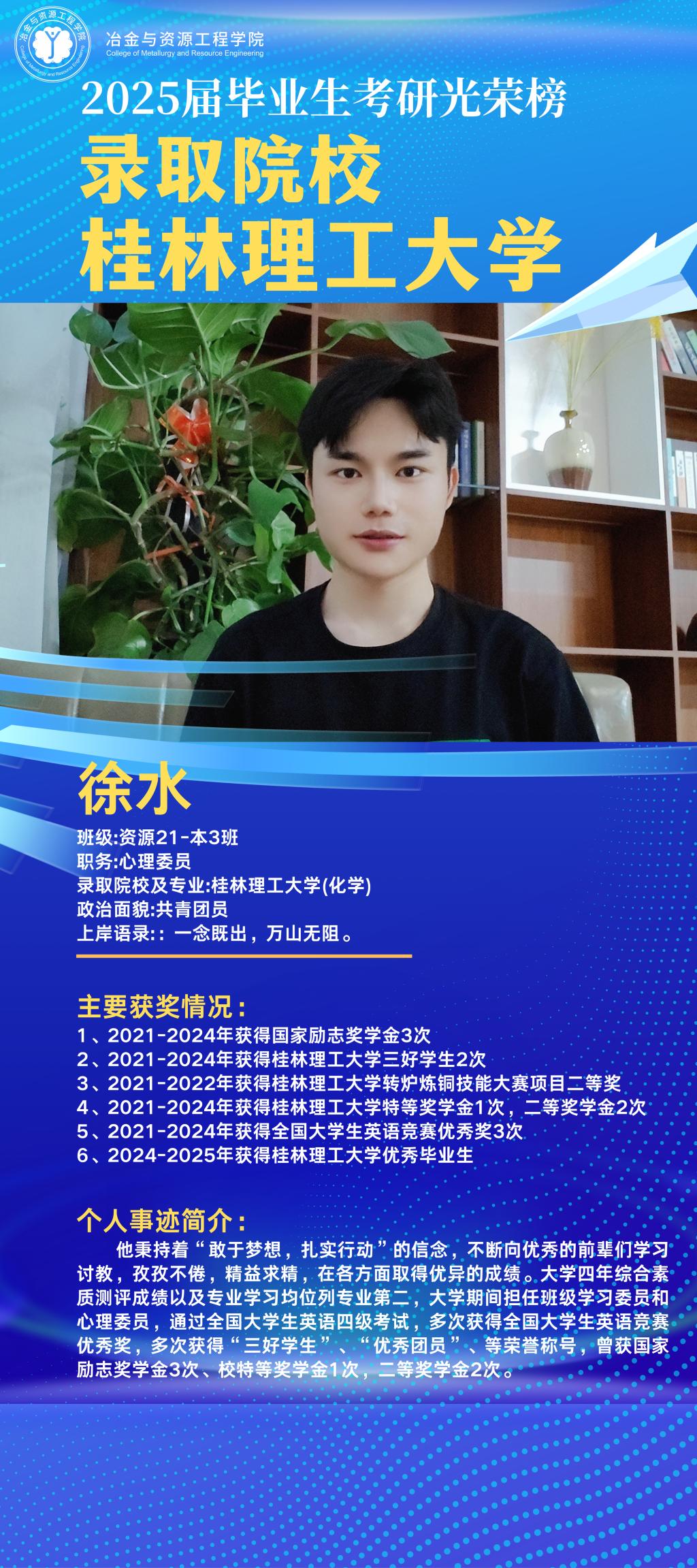 宝剑锋从磨砺出,梅花香自苦寒来。2025年,冶金与资源工程学院13名毕业生成功考研上岸!他们在公式的密林中披荆斩棘,勇毅前行;他们于知识的海洋中踏浪前行,一往无前;他们以勤为笔,书写着人生的精彩篇章,他们用汗水与坚持,书写了青春的华章,为学院增添了光彩。