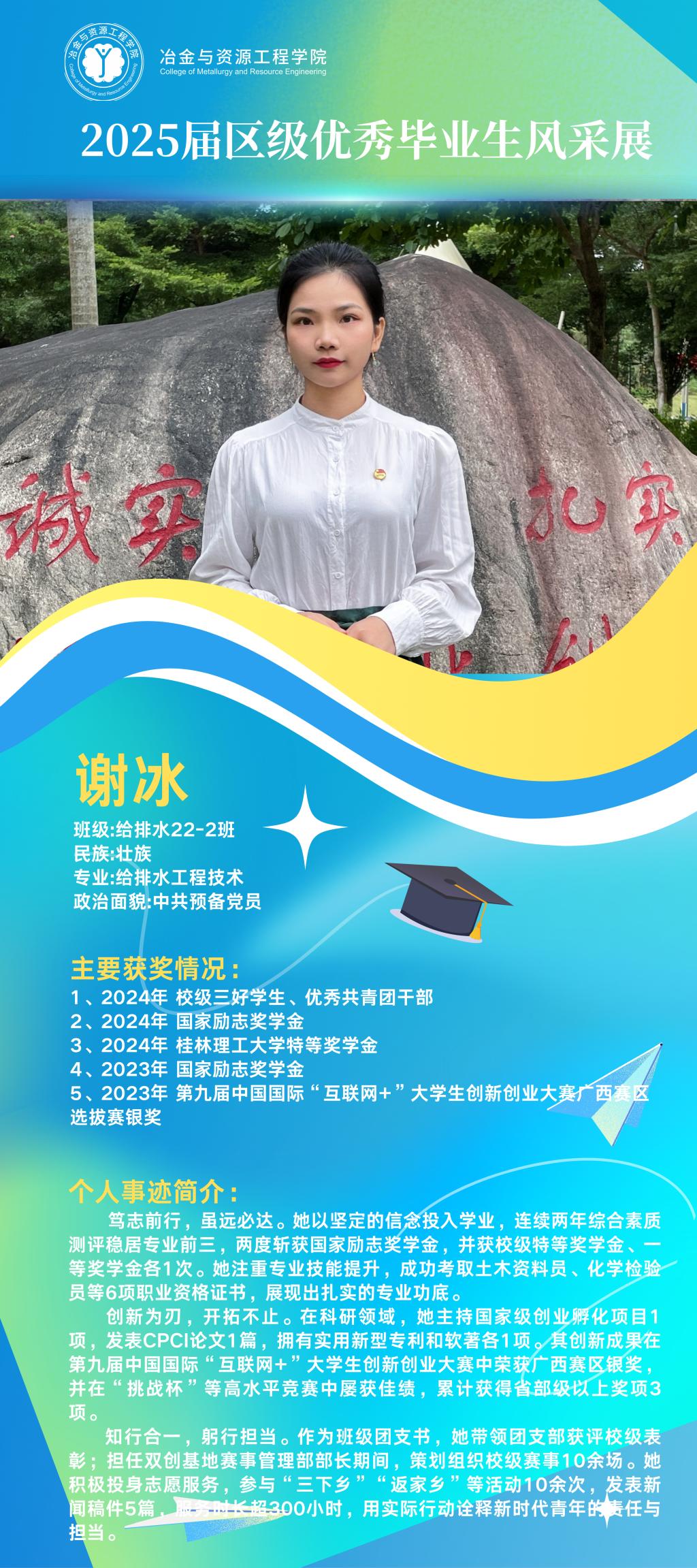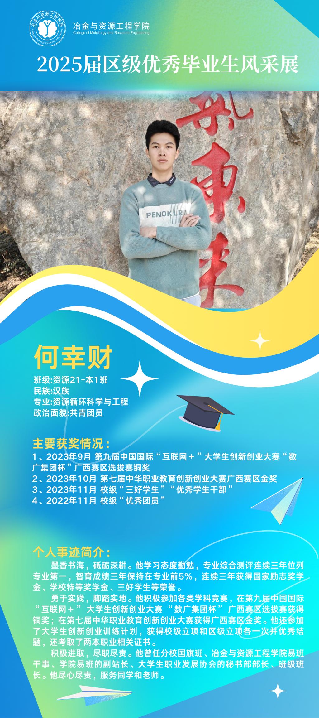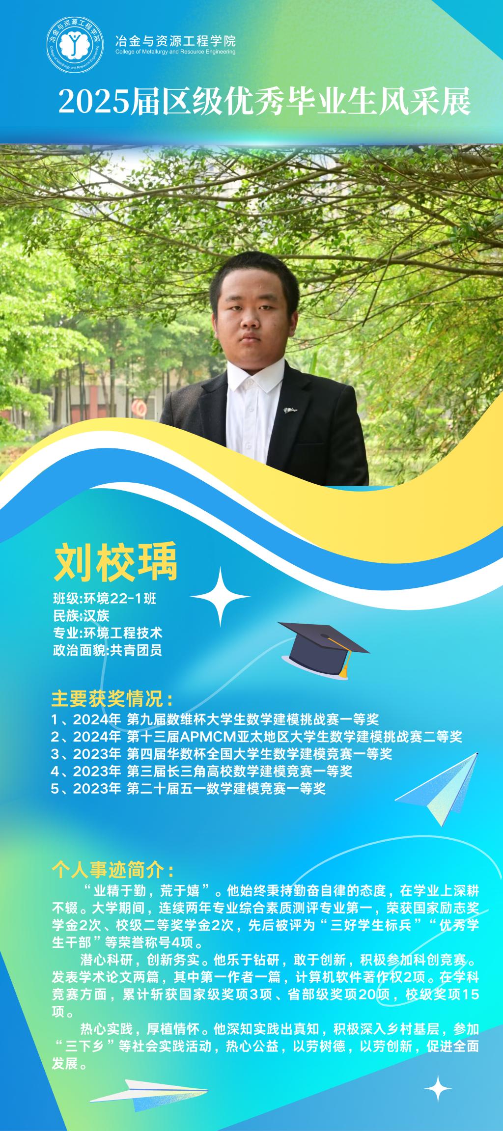 仲夏蝉鸣奏离歌,硕果盈枝映韶华。冶金与资源工程学院2025届广西壮族自治区优秀毕业生以卓越之姿交上青春答卷,他们以勤为笔书写精彩华章,以行动为桨在求学瀚海中劈波前行。