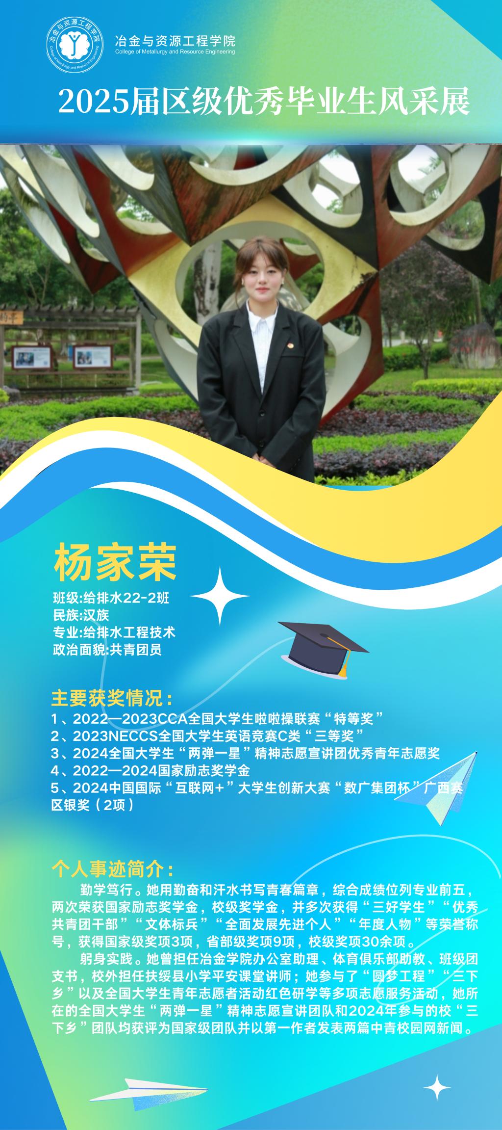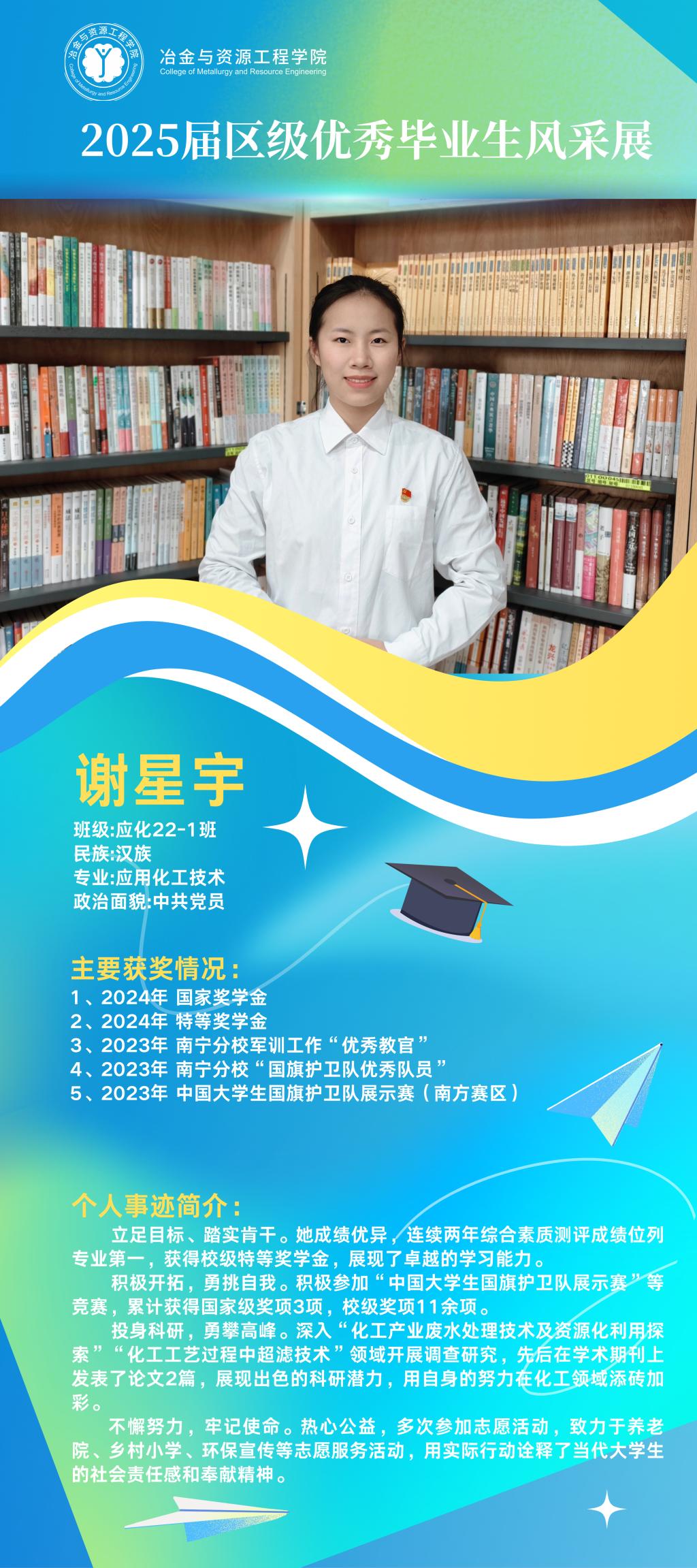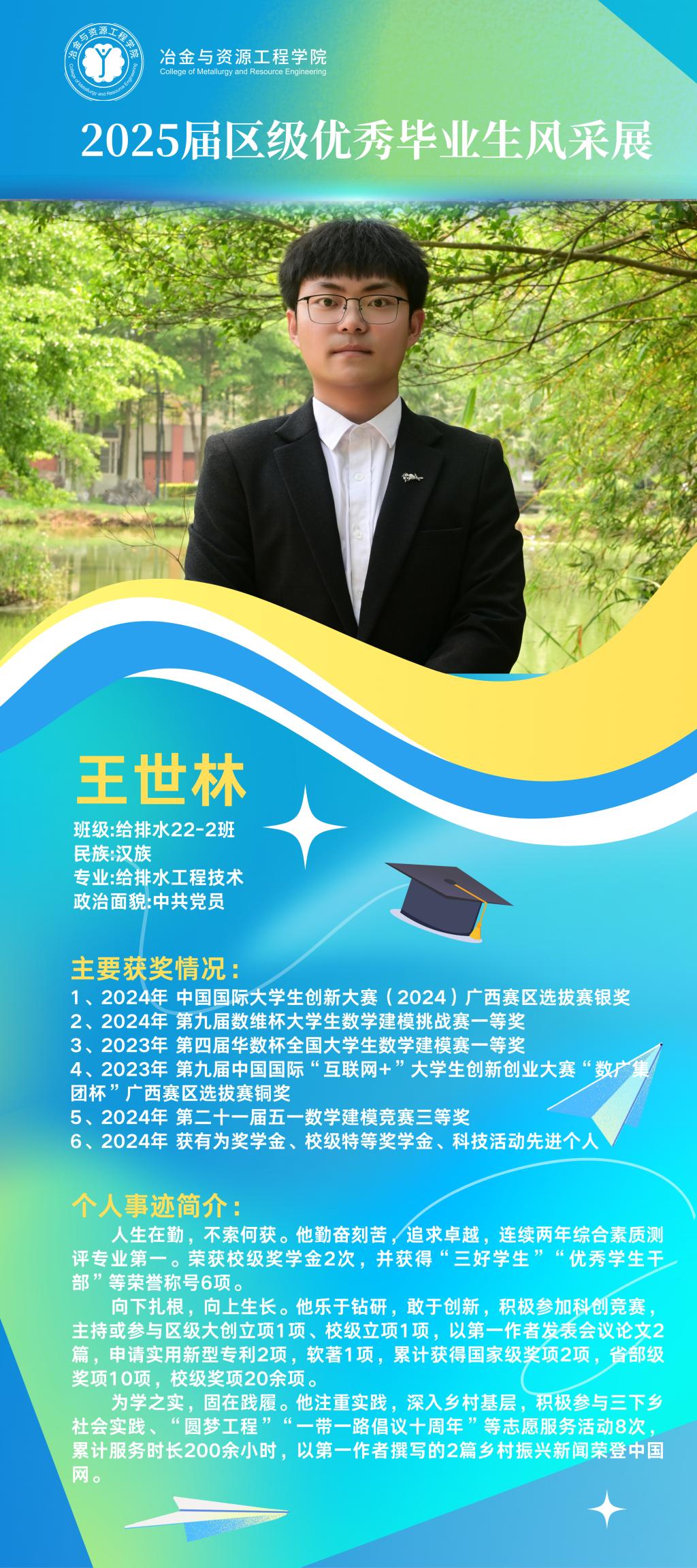仲夏蝉鸣奏离歌,硕果盈枝映韶华。冶金与资源工程学院2025届广西壮族自治区优秀毕业生以卓越之姿交上青春答卷,他们以勤为笔书写精彩华章,以行动为桨在求学瀚海中劈波前行。