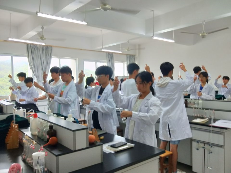 学生在分析实验室做实验