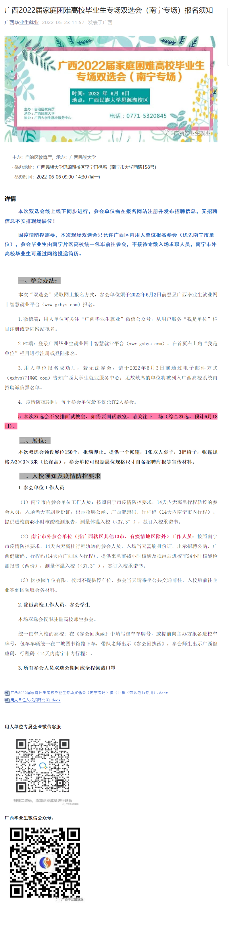 1.广西2022届家庭困难高校毕业生专场双选会(南宁专场)报名须知