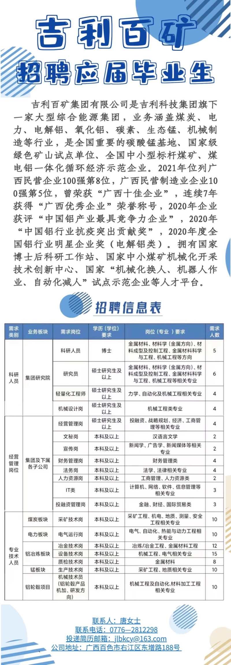 吉利百矿集团有限公司招聘2022年应届毕业生