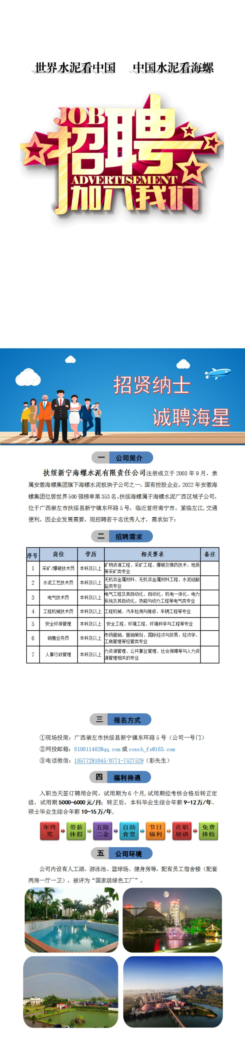 扶绥新宁海螺水泥有限责任公司招聘简章