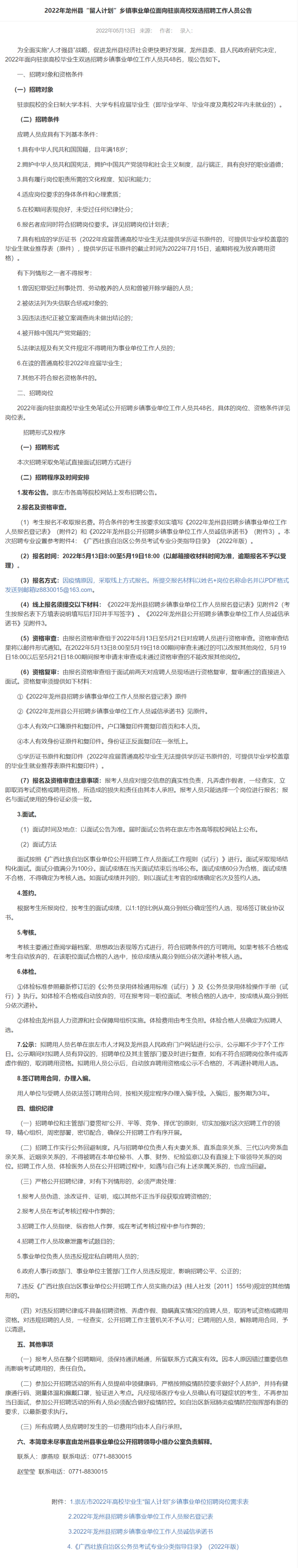 龙州县2022年乡镇事业单位“留人计划”公开招聘工作人员公告