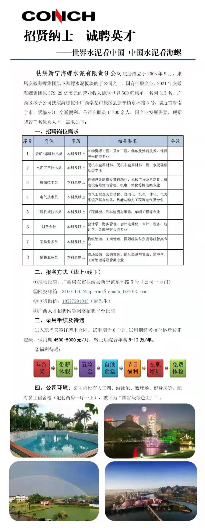 扶绥新宁海螺水泥有限公司招聘简章