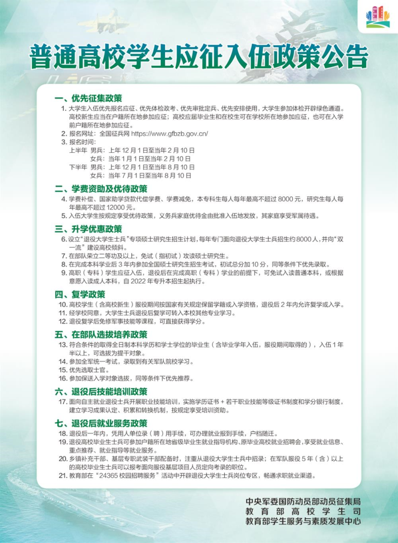 普通高校毕业生应征入伍政策公告
