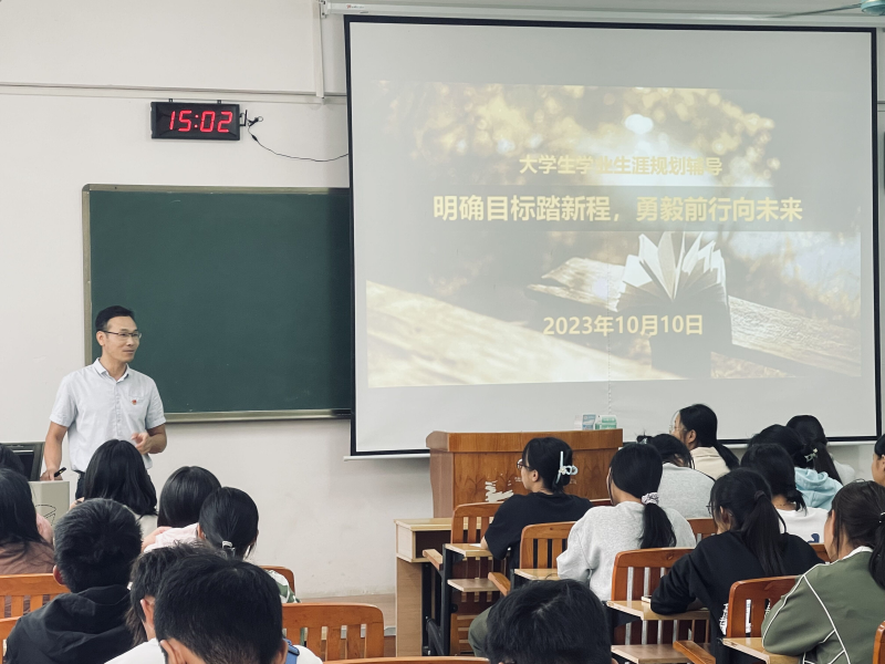 老师们围绕“明确目标踏新程,勇毅前行向未来”主题,结合党的二十大精神和习近平总书记关于青年成长成才的重要论述精神,以往届的身边的优秀学子的先进事迹为例,分别从“汲取榜样力量”、“明确奋斗目标”、“积极行动起来”等三个方面向2023级本专科新生作学业生涯规划辅导报告,教育引导同学们牢固树立“强国有我”信念,自觉厚植爱党爱国爱社会主义情怀,谋划制定好大学阶段奋斗目标,树立良好学习生活习惯,努力学好专业技能,提升综合素质,实现全面发展,不断增强自身竞争力和服务社会服务人民本领。